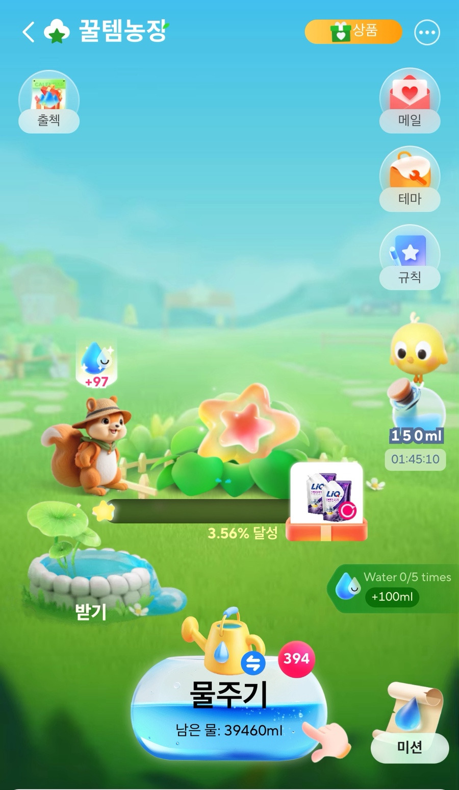 - 매일 꿀템농장에 접속하면 기본적인 물방울을 받을 수 있어요.